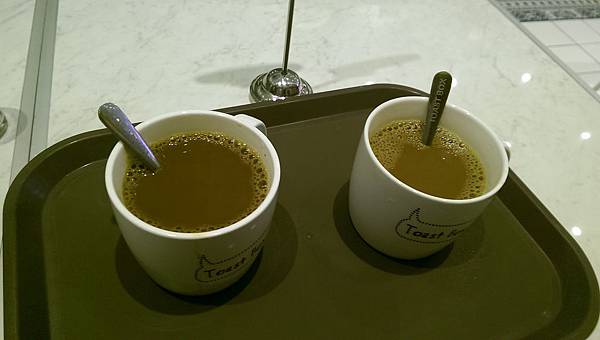 咖啡我們都點熱咖啡,可以選加糖或是乳水或是煉乳,我們都是加煉乳的,喝起來甜甜的,很好喝。