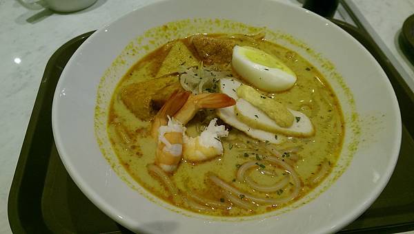 這是叻沙麵,有微微的辣味,和二隻蝦子,湯頭很鮮美好喝,配上粗米粉也十分有咬勁。